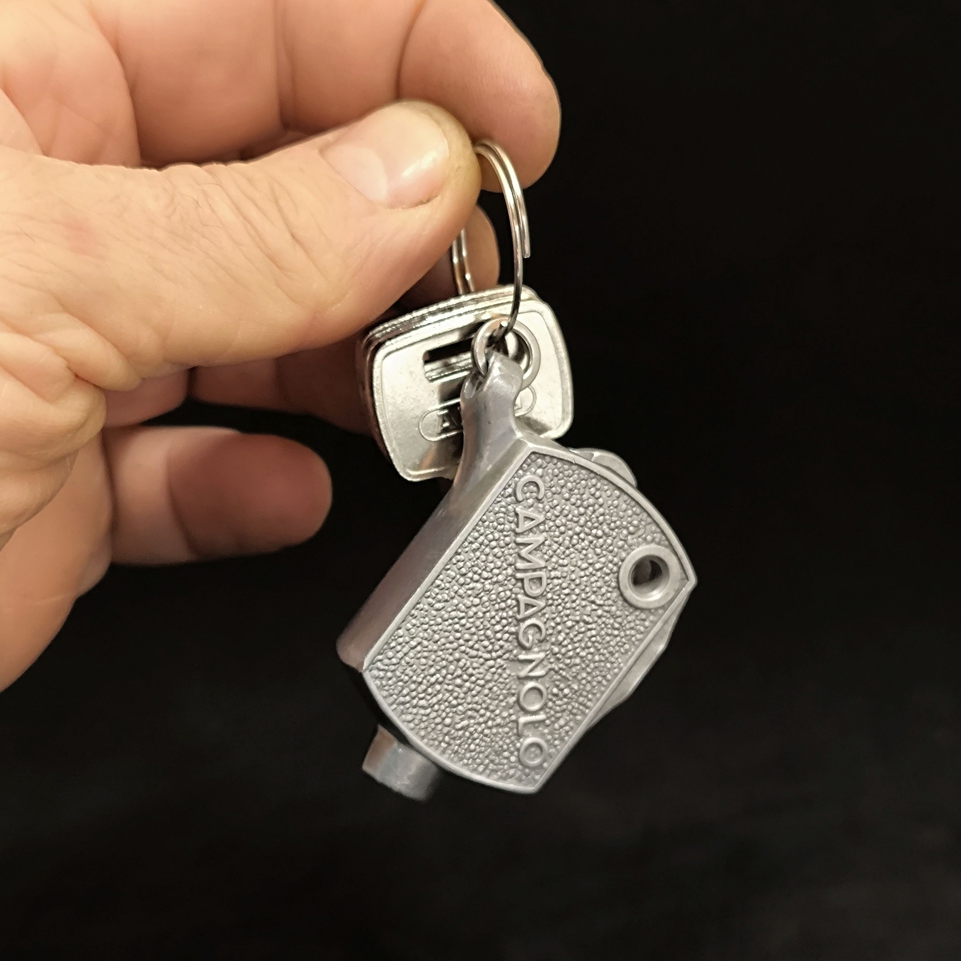This Campagnolo Valentino derailleur keyring is a nostalgic and collectible item for cycling enthusiasts.
