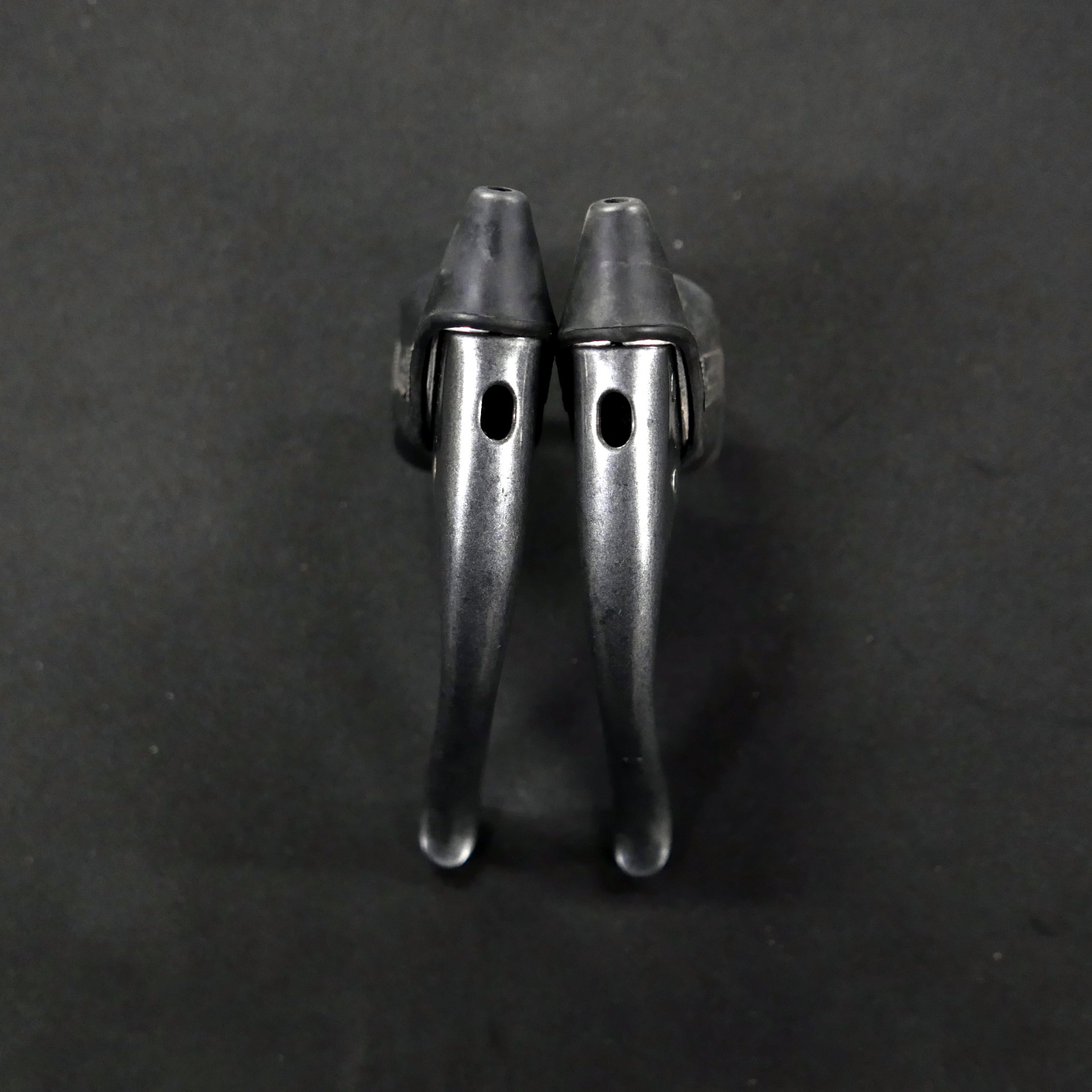 It's aero type- brake wire goes under the hoods. Rubber hoods in great condition, levers are dark grey painted. It comes as pair.